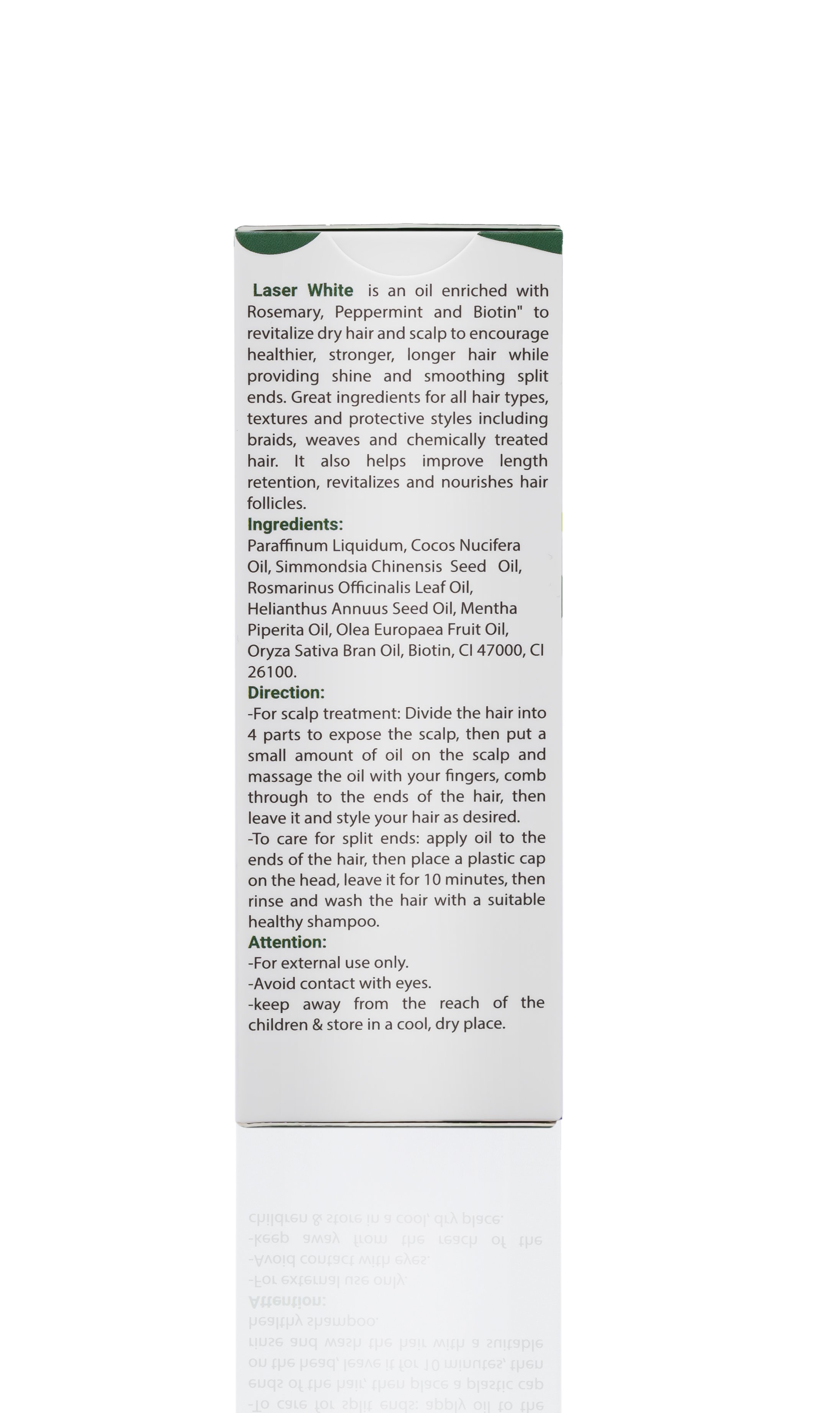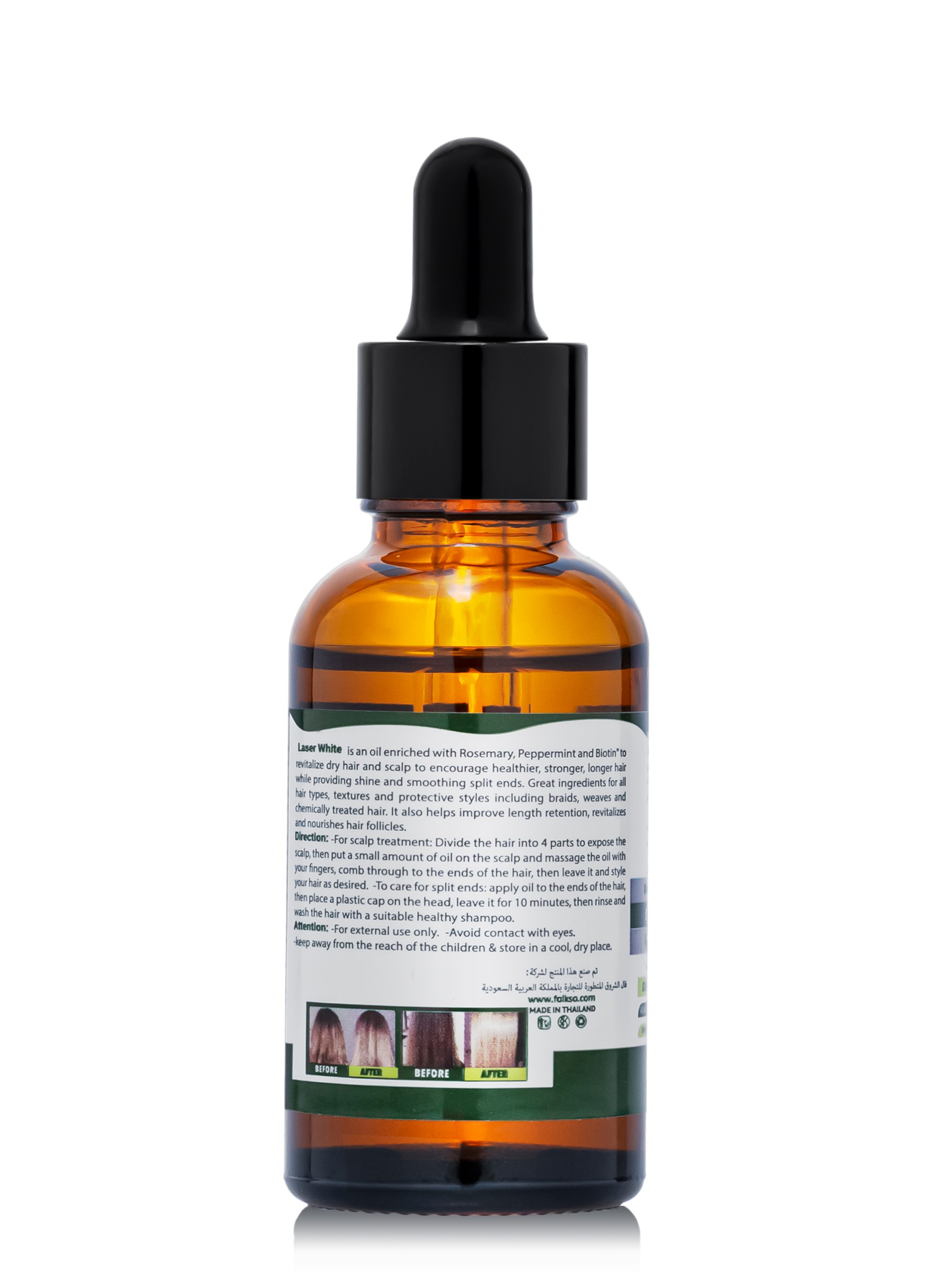 زيت ليزر وايت يتميز بمزيج غني من الزيوت الطبيعية التي تعمل بتناغم لتغذية الشعر وتحفيز نموه بعمق:
