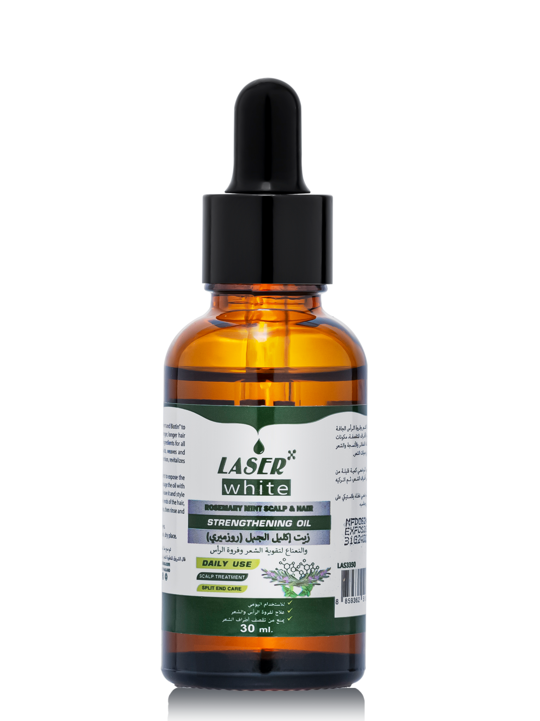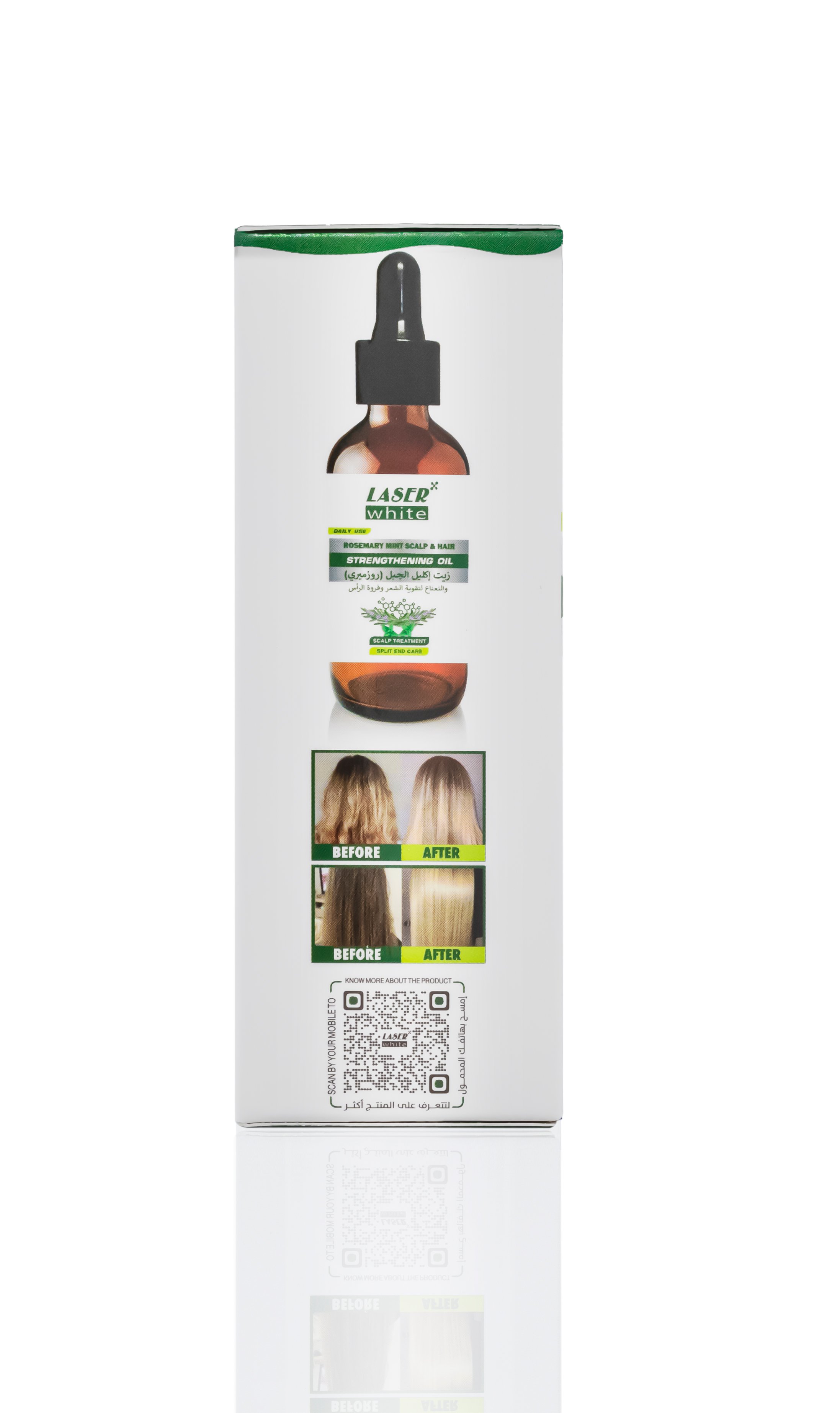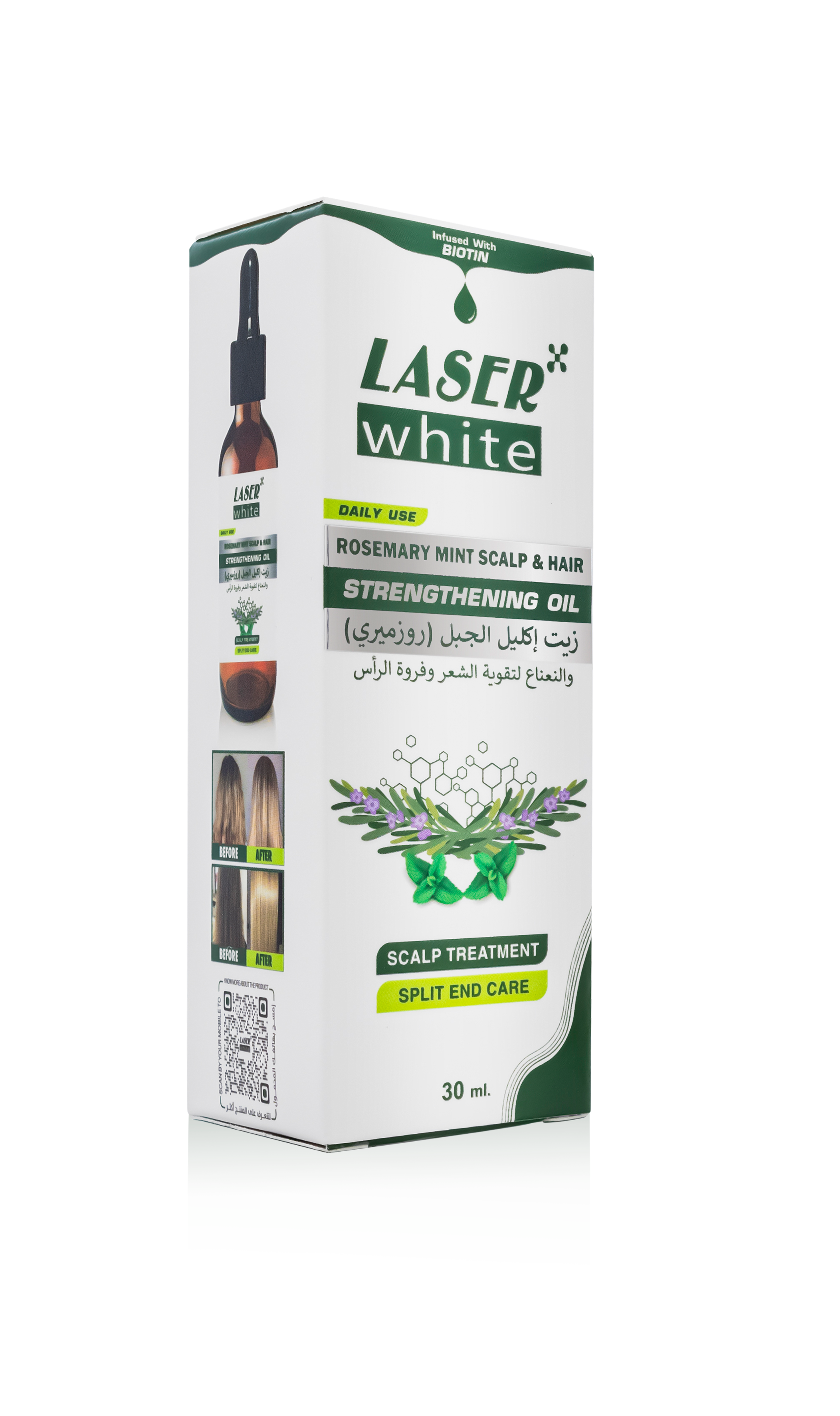 استعيدي حيوية شعرك وتألقه مع زيت ليزر وايت بإكليل الجبل والنعناع، المستخلص الطبيعي الذي يجمع بين النقاء الفائق والمكونات الفعالة لعلاج الشعر وفروة الرأس في آنٍ واحد.