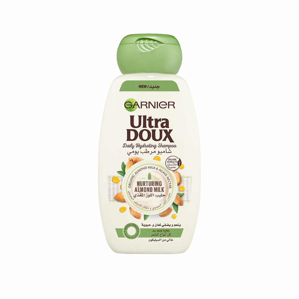 شامبو غارنيه الترا دو شامبو مرطب يومي بحليب اللوز 400مل يقدم تركيبة لطيفة تجمع بين حليب اللوز العضوي المعروف بخصائصه المغذية ونكتار الأغاف ذو القوام الخفيف. بفضل مكوناته الطبيعية بنسبة 98%، يساهم في ترطيب الشعر بعمق مع الحفاظ على خفة ونعومة ملمسه، مما يجعله مناسبًا للاستخدام اليومي دون أن يترك أي أثر دهني. هذا الشامبو يناسب جميع أنواع الشعر ويعمل على تعزيز مظهر صحي وحيوي.