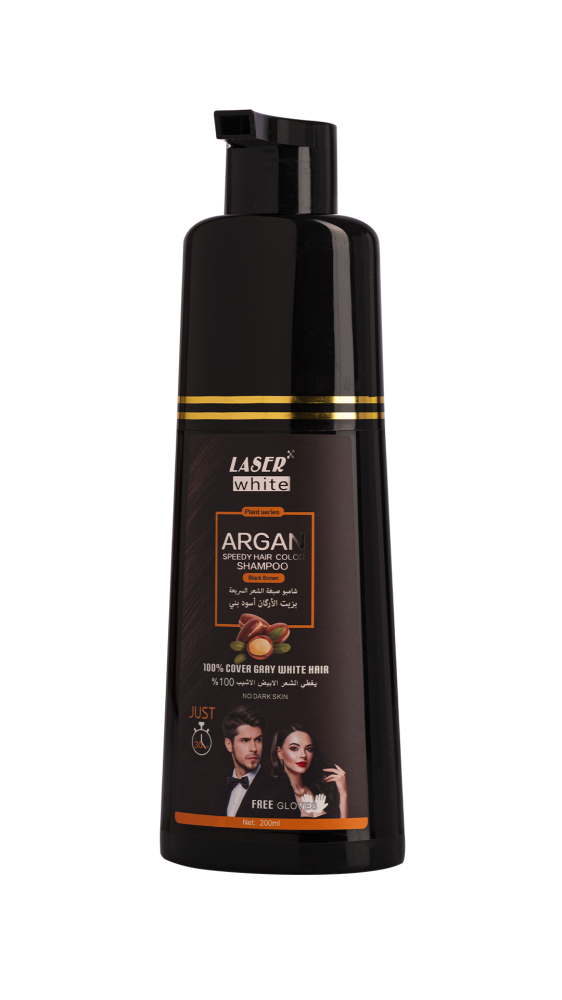 ليزر وايت شامبو أرجان أسود بني هو الحل الذكي لتسويد الشعر والعناية به في خطوة واحدة، دون تلف أو جفاف.
