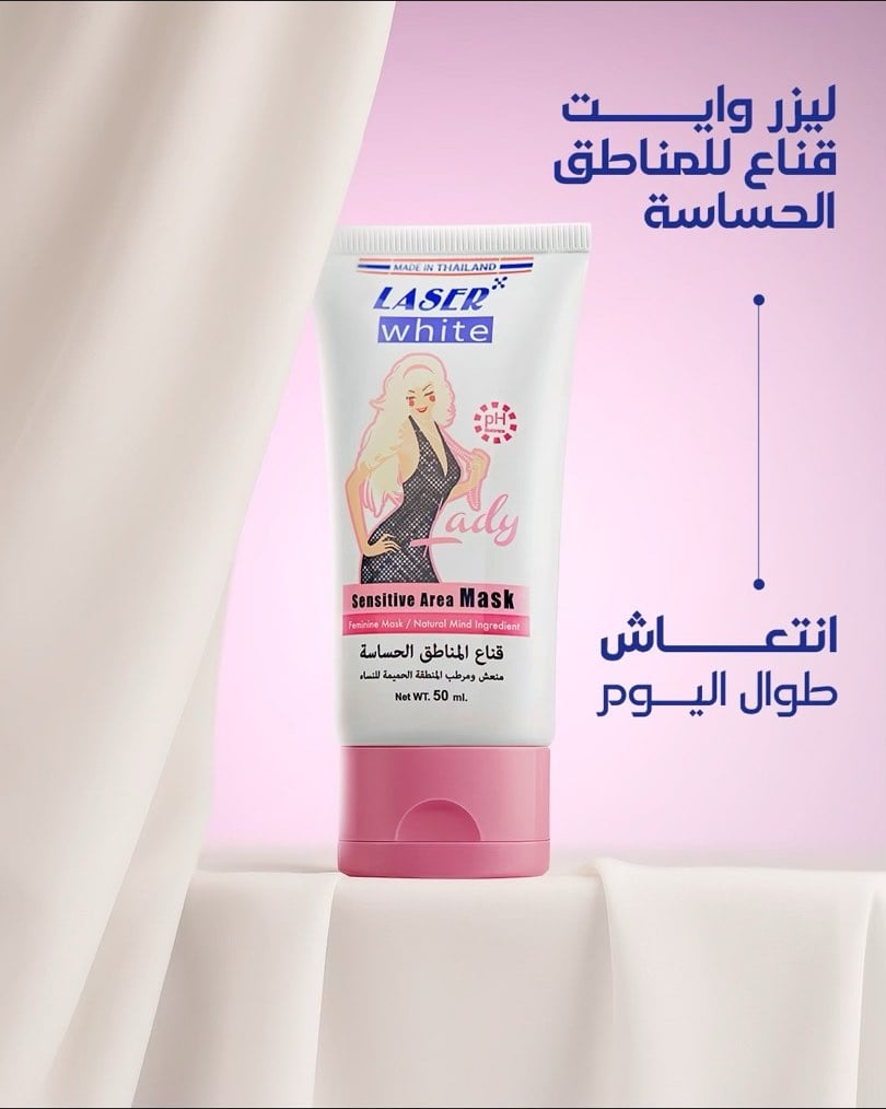 امنحي بشرتكِ الحساسة العناية الفاخرة التي تستحقها مع قناع ليزر وايت لتفتيح المنطقة الحساسة. تركيبة فعالة وآمنة مصممة خصيصًا لـ تفتيح المناطق الحميمة، شد البشرة الحساسة، وتوحيد لون الجلد بلطف وبدون تهيّج.