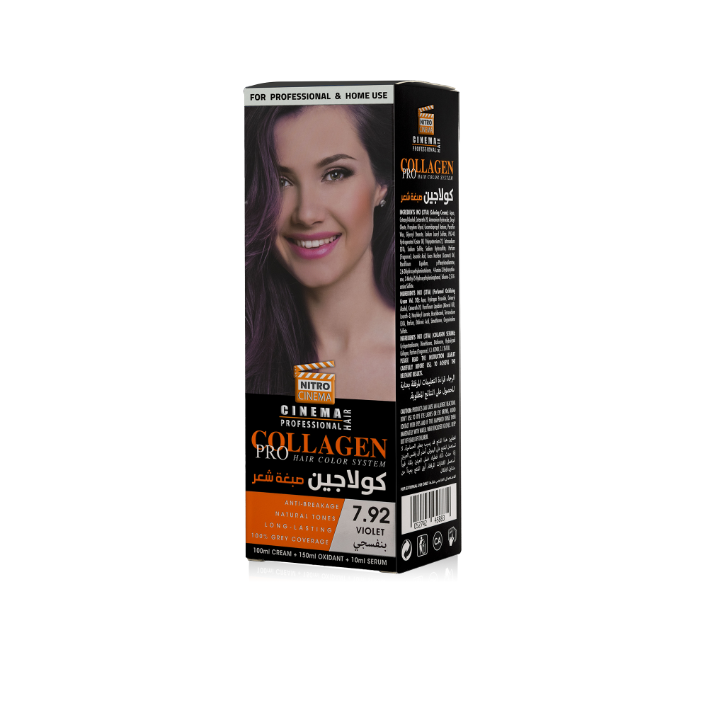 اختاري نيتروسينيما صبغة شعر بنفسجي بالكولاجين (7.92) لتعيشي تجربة تلوين فاخرة تجمع بين اللون العصري والتغذية العميقة.